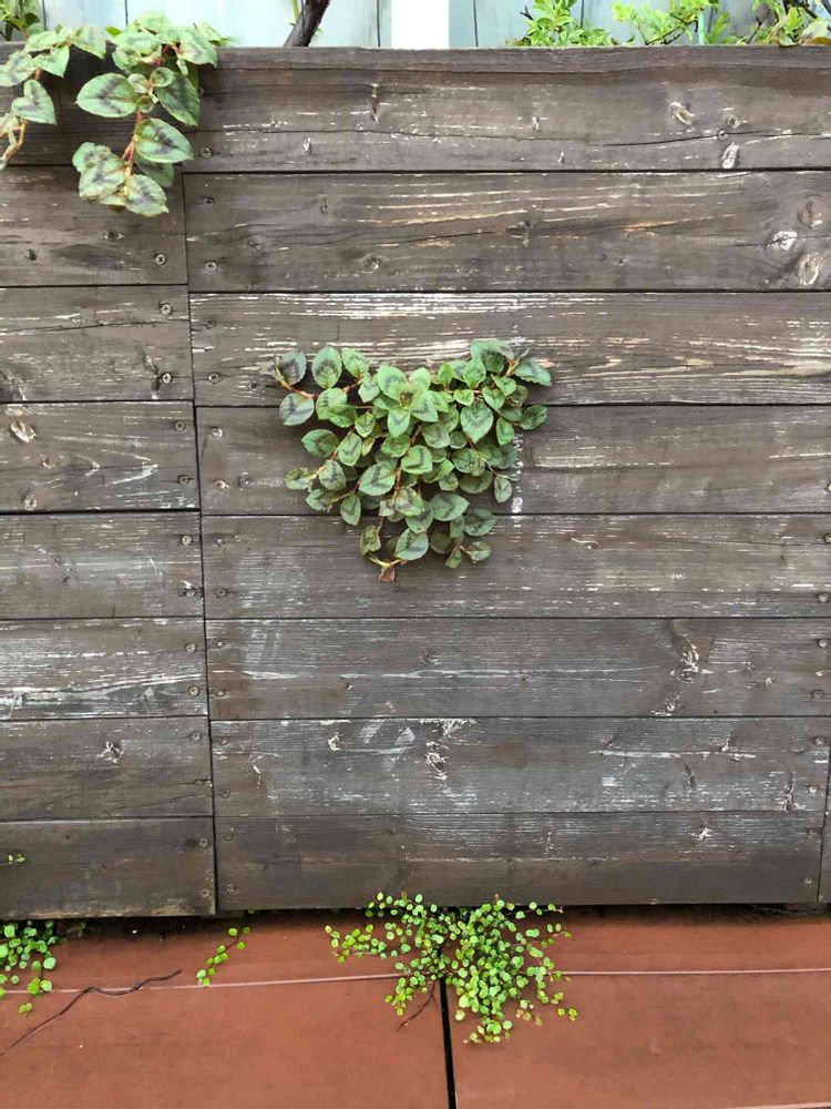 店の脇にある花壇の目隠しの板の壁から、ど根性系のヒメツルソバが❗️