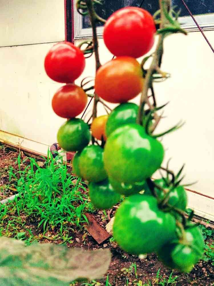 朝の散策で、みさと公園の川沿いを歩いて行くと、工場の裏に畑があり、🍅が有りました。