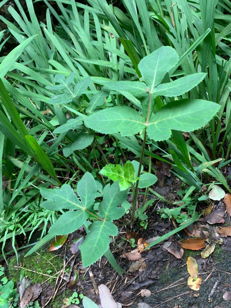 シシウドは2〜3回羽状複葉、有毛、葉柄は袋状になる