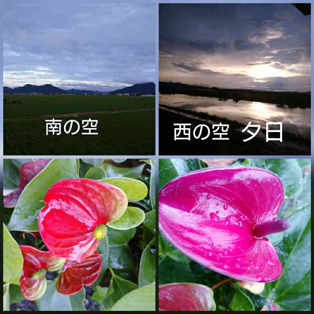 今日は凄い☂️が降り夕方に雨がやみました。夕日が綺麗で北の空には虹が出てました🌈北の写真が撮れなくて残念😵2階の窓からでは難しかった😢