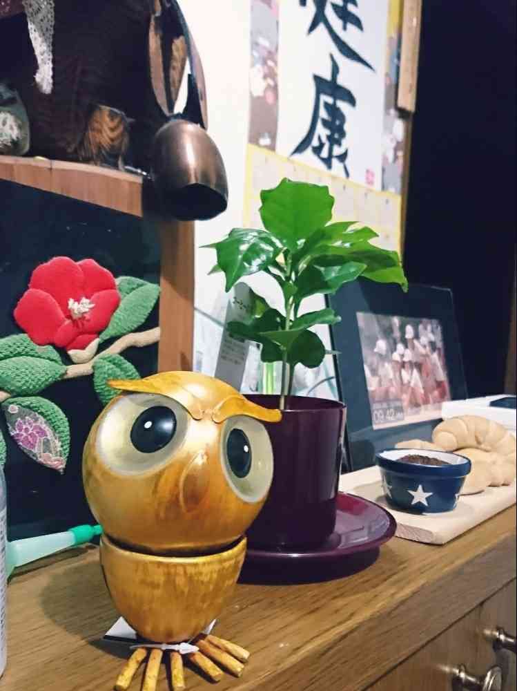 玄関の隅っこに🦉&☕コーヒーの木🌳