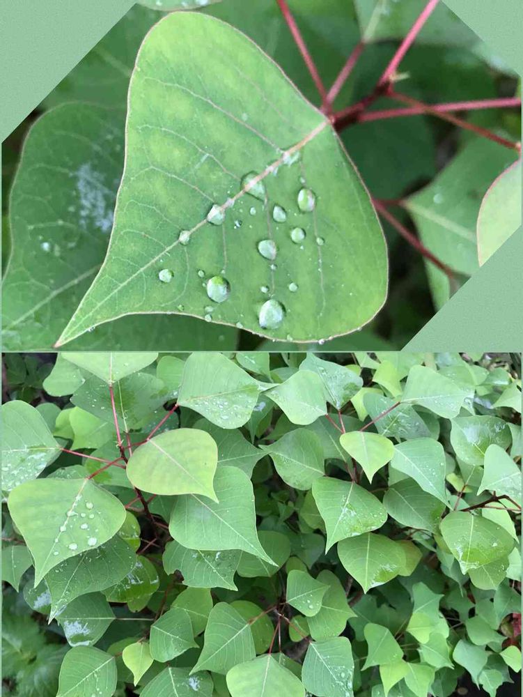 雨の日の南京黄櫨。ハート形の葉が美しい😊