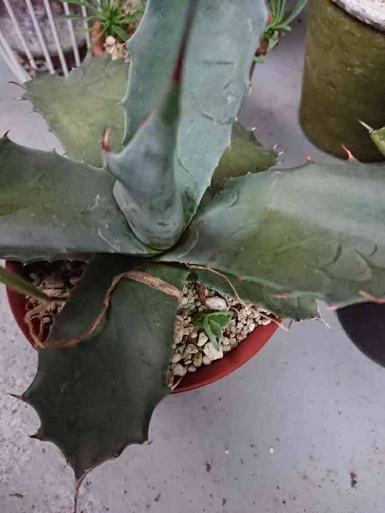 おはようございます~涼しい朝です。曇りですが アガベ パラサナ 子供でてきた!✨