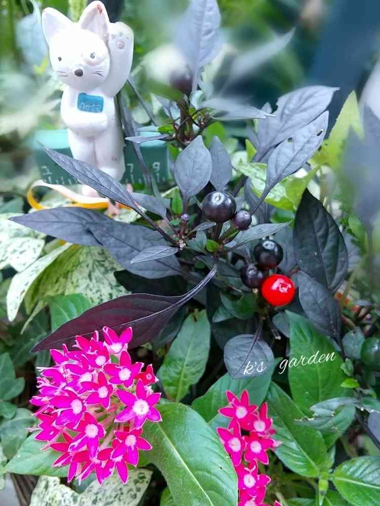 寄せ植えの中の観賞用トウガラシ⸜❤︎⸝♥⸜❤︎⸝