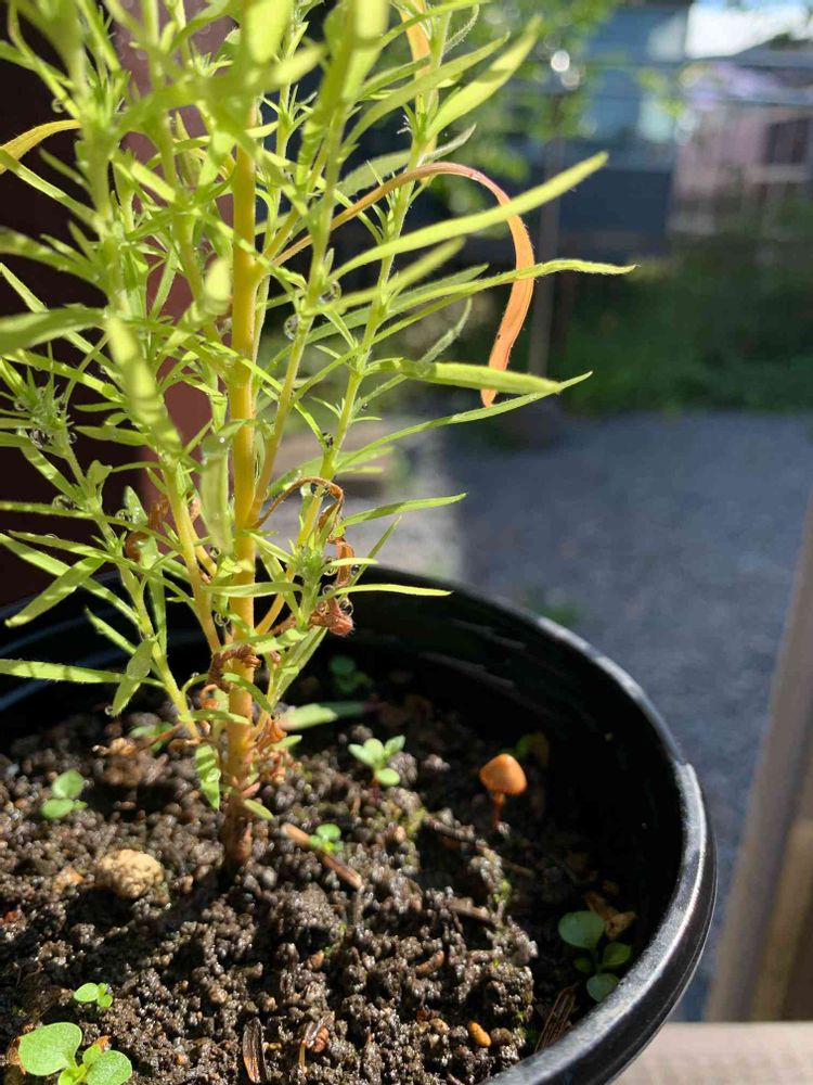 コキアちゃん、なかなかもしゃもしゃにならんなぁとみてみたら、ありゃ〜。キノコ生えとるw