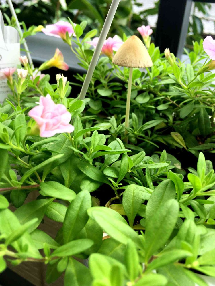 朝見るとどこかメルヘンな光景が🤣 雨続きでキノコ🍄が生えたカリブラコアさんで〜す💦