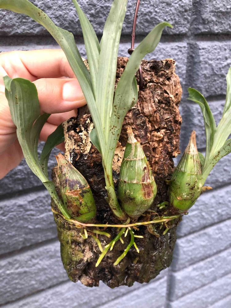 私もタケノコタイプを育てるのは初めてだし、蘭の着生も初めてだったのでドキドキだったのですが、必死にしがみ付いてくれました。