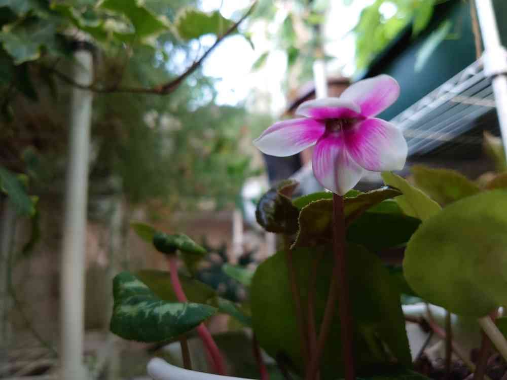 ベランダのガーデンシクラメン、季節間違えちゃったのか、