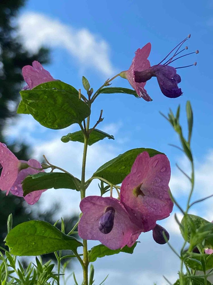 ガクから蕾、紫の花が咲くまでの変化も楽しいお花です。