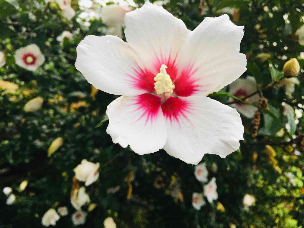 梅雨明けを待つ宗旦木槿が天を仰いでいます