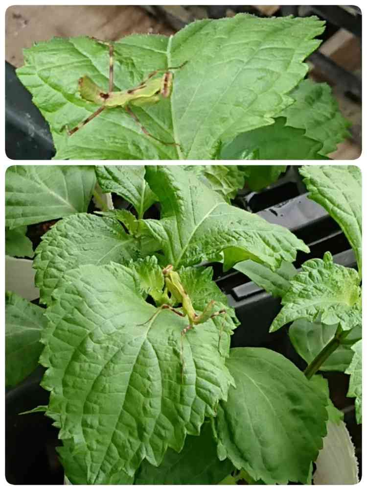 ホームセンターの青シソにカマキリ😵