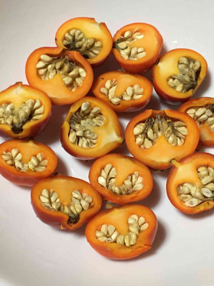 この半分に50個程の種が入ってて、それを取り除くと中は空っぽ状態で果肉がありません