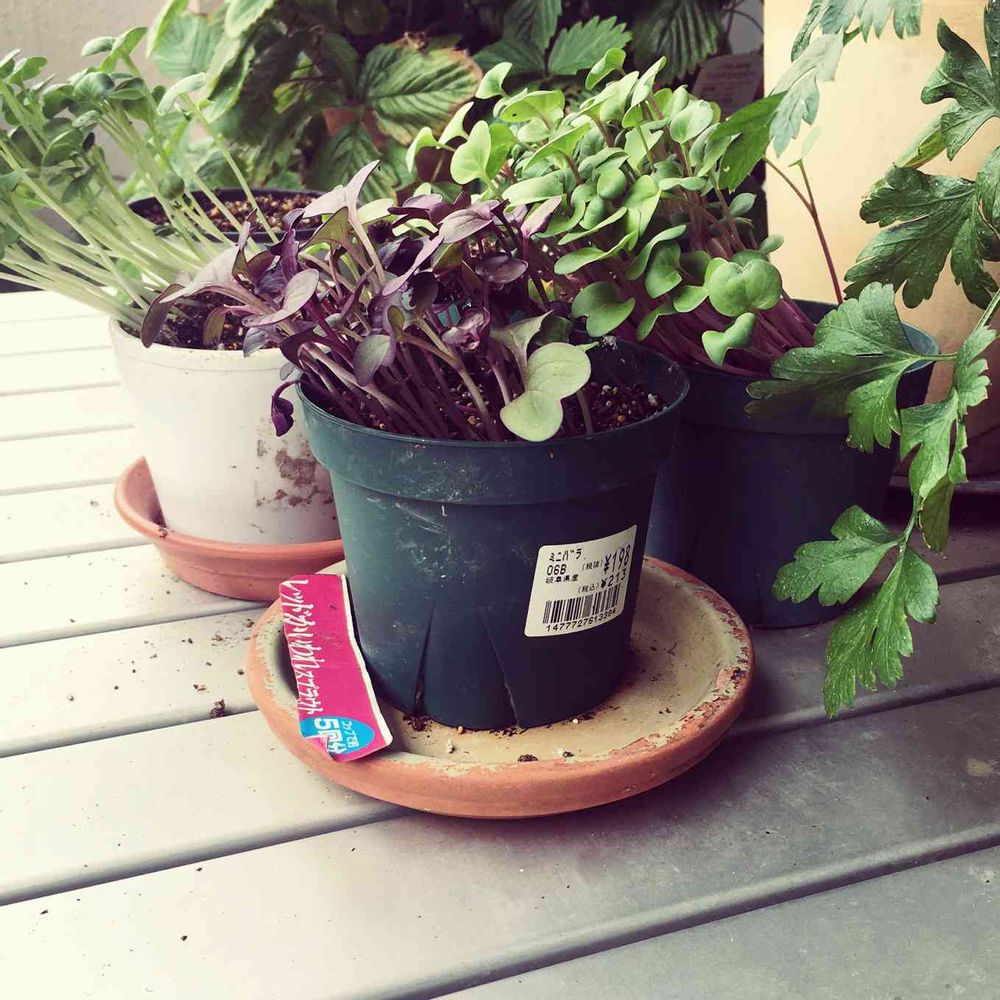 バルコニー/ベランダ,ルビーカイワレ大根栽培,紫カイワレ大根栽培の投稿画像