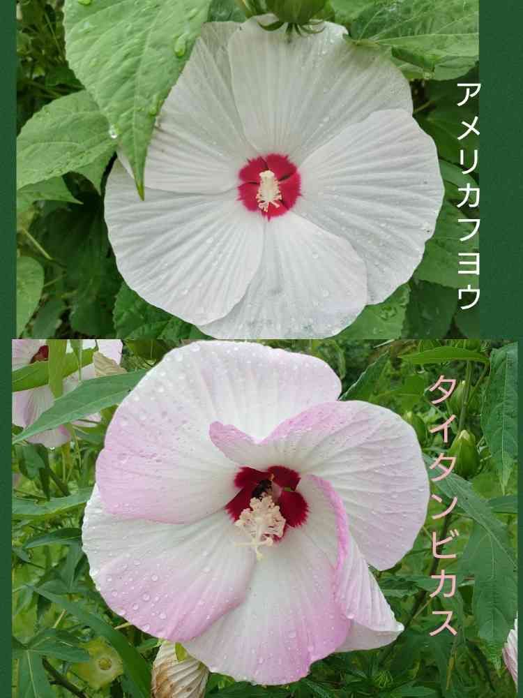 花はアメリカフヨウに葉はモミジアオイに似ています😃🎶
