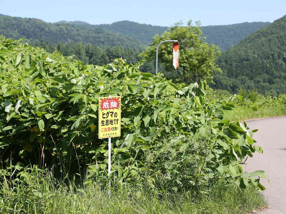 数年前にこの看板の近くでヒグマが牧草畑で寝ていました。
