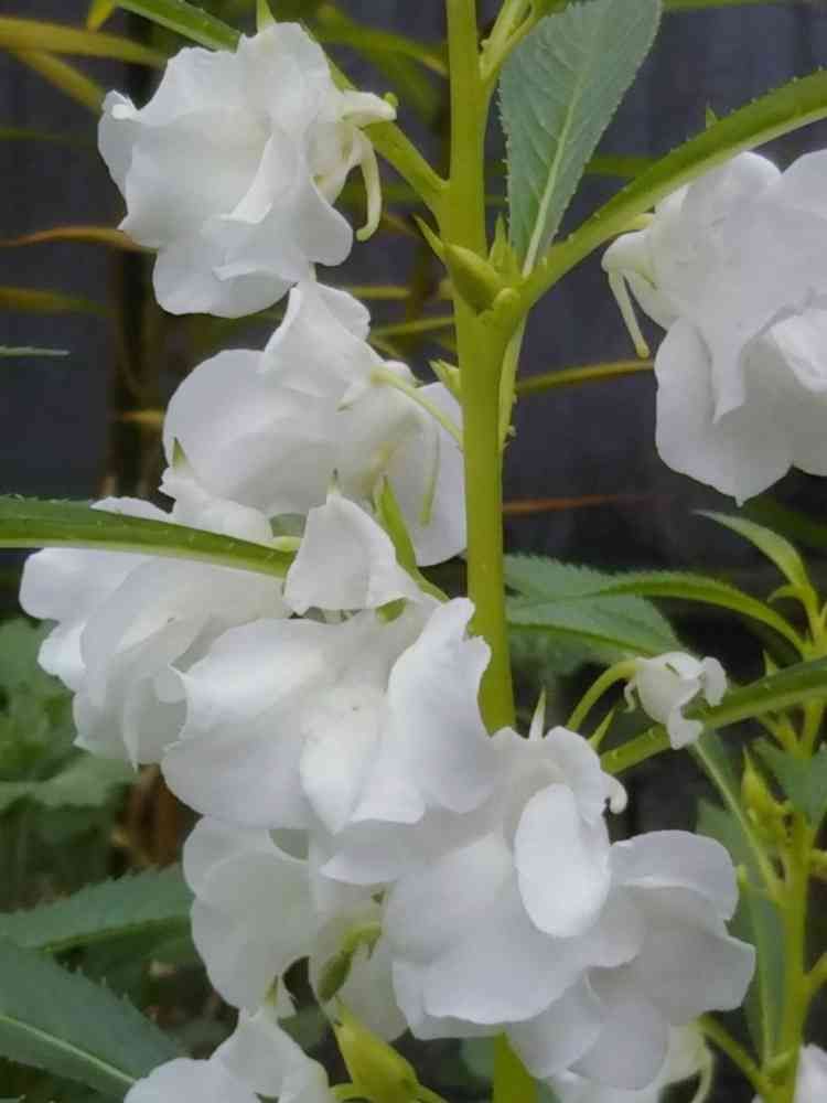 こちらも白いホウセンカを見て昔母が実家で咲かせてたのを思い出しました。