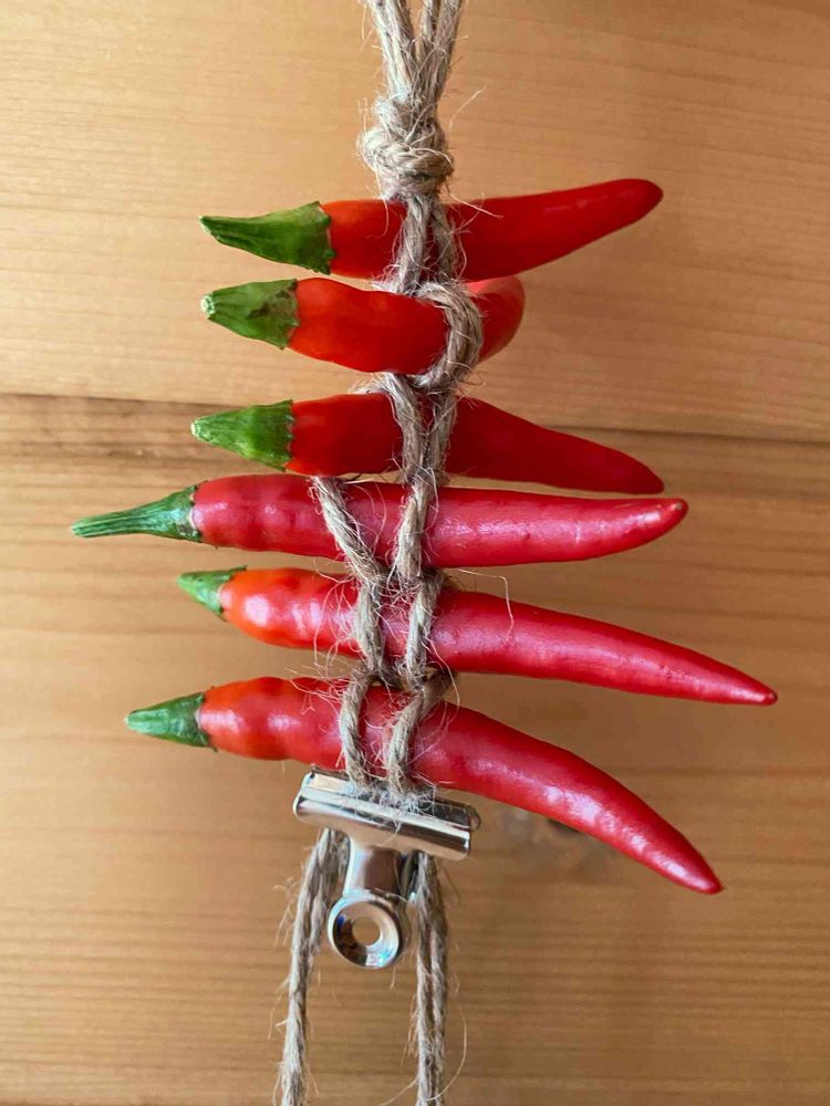 真っ赤になったので収穫してきました😃今日は晴れ、明日は曇り?そのまま梅雨が明けそうだとニュースが嬉しいことを言ってくれたので、こんな感じに吊るして乾燥させてみます✨
