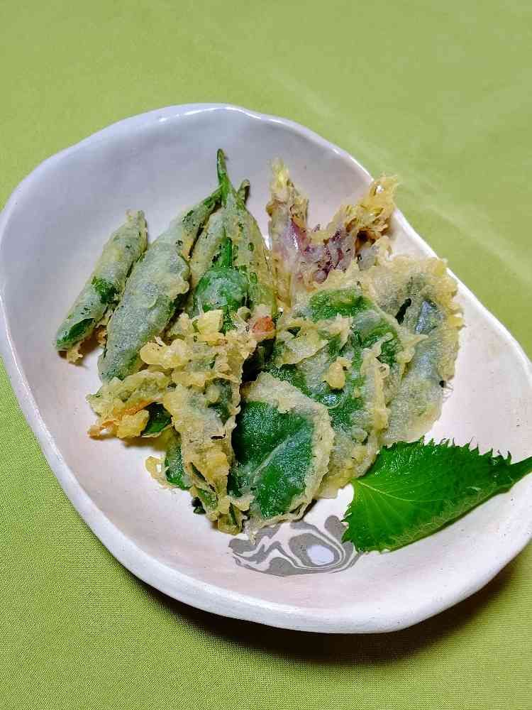 シシトウ、ミョウガ、オカワカメは開いたままと…ちくわ・ジャガイモを巻いた物と🎵