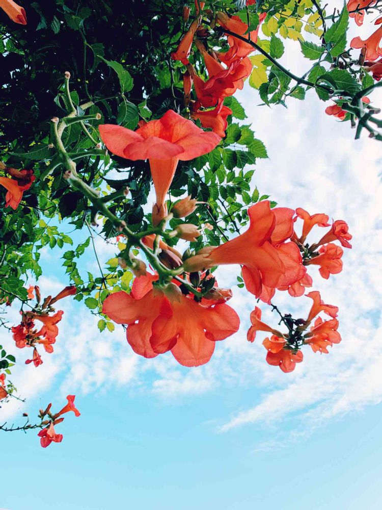 ノウゼンカズラの花、たくさん咲いていますね。ウチにもありますが、あまりにも広がってしまったので、少し間引きました。でも、数か所でまだ、元気よく咲いています。🌸🧡🧡🧡💖😊✨👌🏻👍🏻