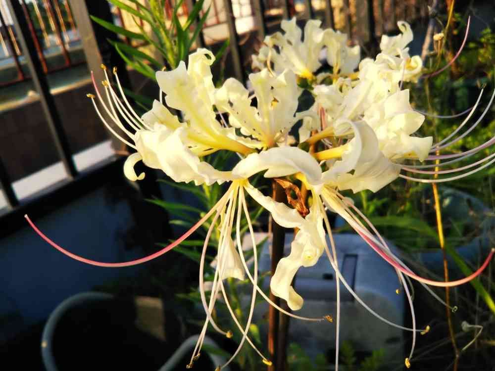 梅雨が長引き、季節を勘違いしたのか、ここ何年も咲かなかった「ダイヤモンドリリー」(ネリネ)がきれいなクリーム色の花を咲かせていました!メシベが紅いのが、さりげないアクセント✨