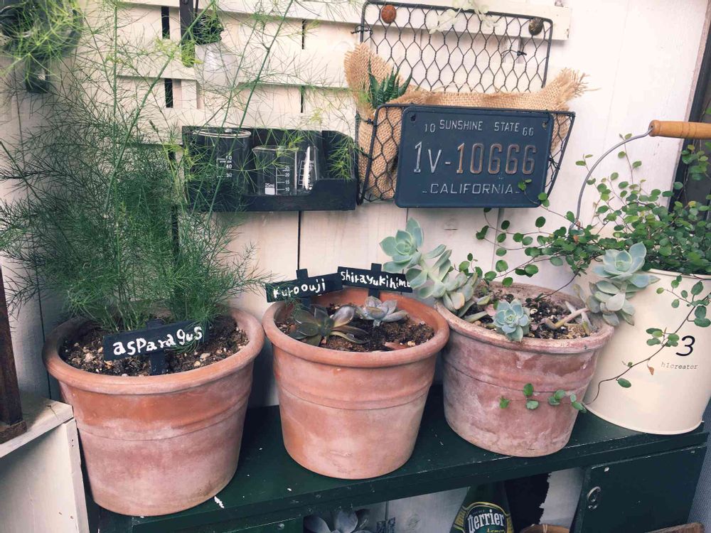 先日作った、プランターを壁に取付けしました。さてさて、またグリーンを探す楽しみが出来ました😍