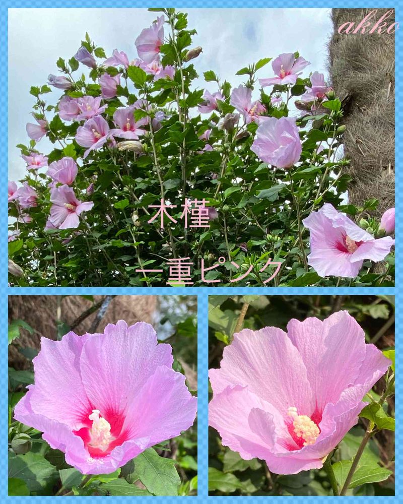 一重のピンクで美しい木槿(ムクゲ)が咲いています‼️