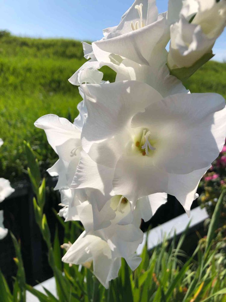 ご近所さんのグラジオラスですが😅、白色のグラジオラスが珍しくて…。