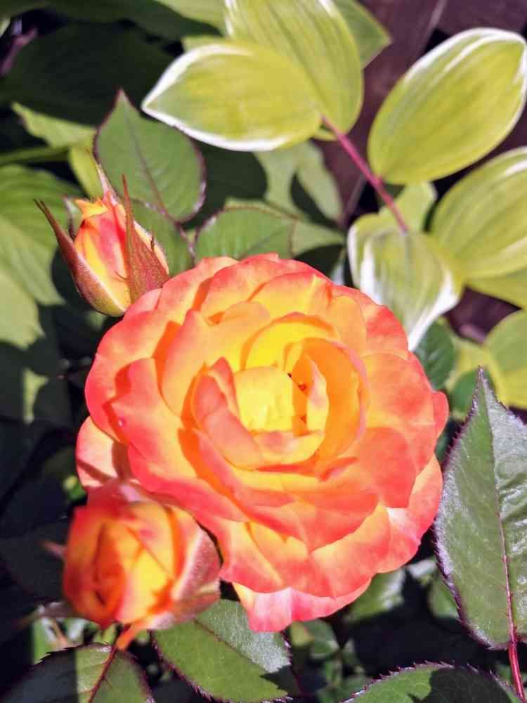 今日のミニバラは太陽の光を浴びて触ると火傷しそうな色になってます🔥🔥🔥