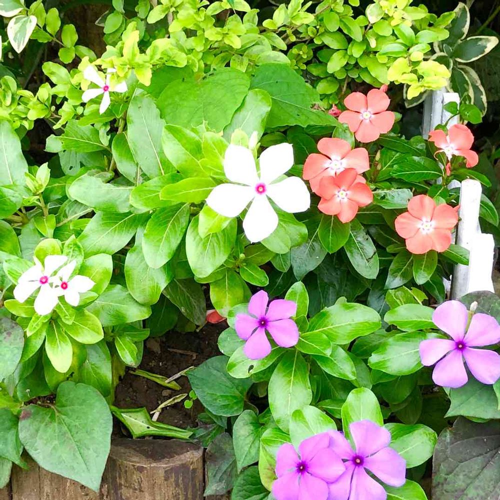 ニチニチソウが三色同時に咲きました😃🌸🌱