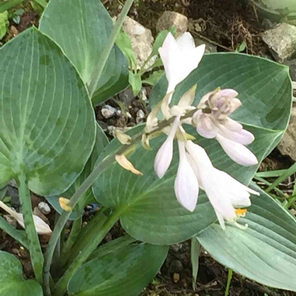 ホスタ「ハルシオン」が咲いています。二方を壁、一方をアジサイに囲まれた所に地植えしたら、なんともう一方をオミナエシ(多分)に囲まれてしまい、ミニ「秘密の花園」状態で、どこからも見えなくなってしまいました…。それでも咲いてくれて、偉い。
