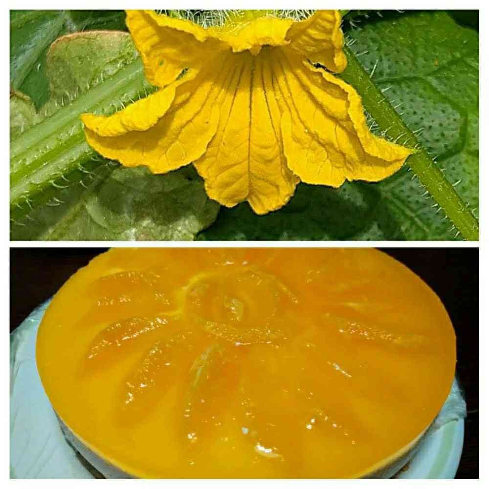 キョウリのお花 頭を下げてるみたいに✌️下側は、オレンジムースケーキを娘から頼まれて年一回作っています🍊