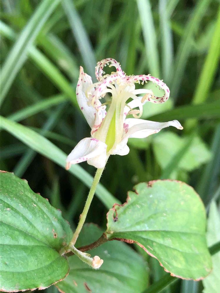 皆さんホトトギスと言われますが本来のホトトギスは自生地ではジョウロウホトトギスのように下垂することが多く、谷の湿ったところに生えて園芸でよくみるホトトギスとはだいぶんイメージが違います😅