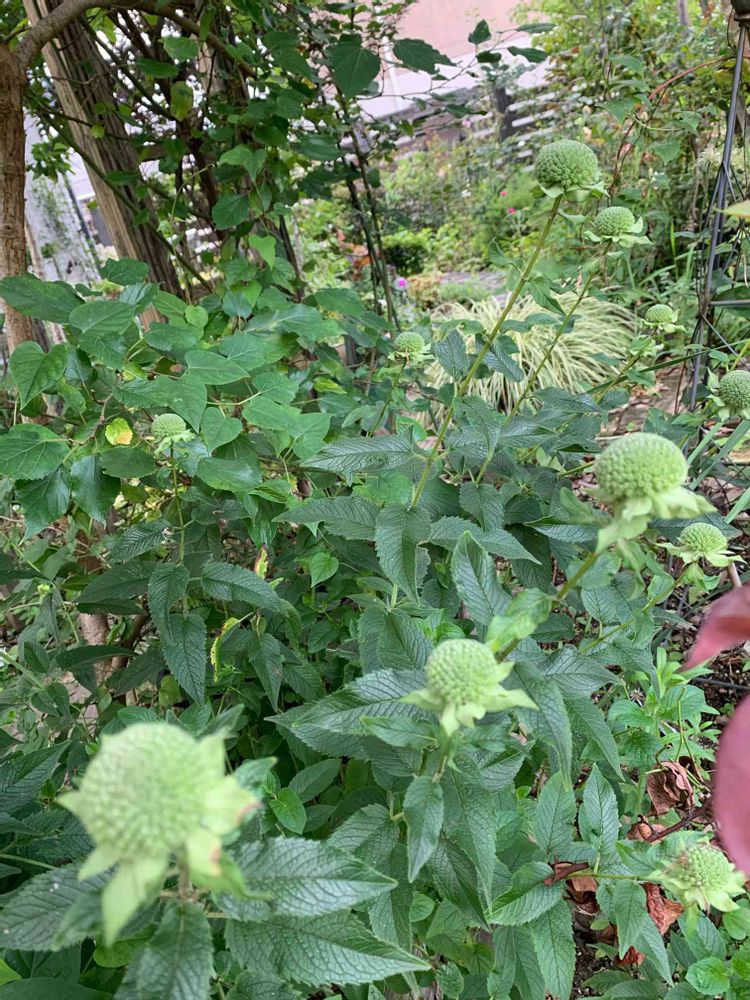 緑の玉が庭のあちこちにコロコロしています(^∇^)
