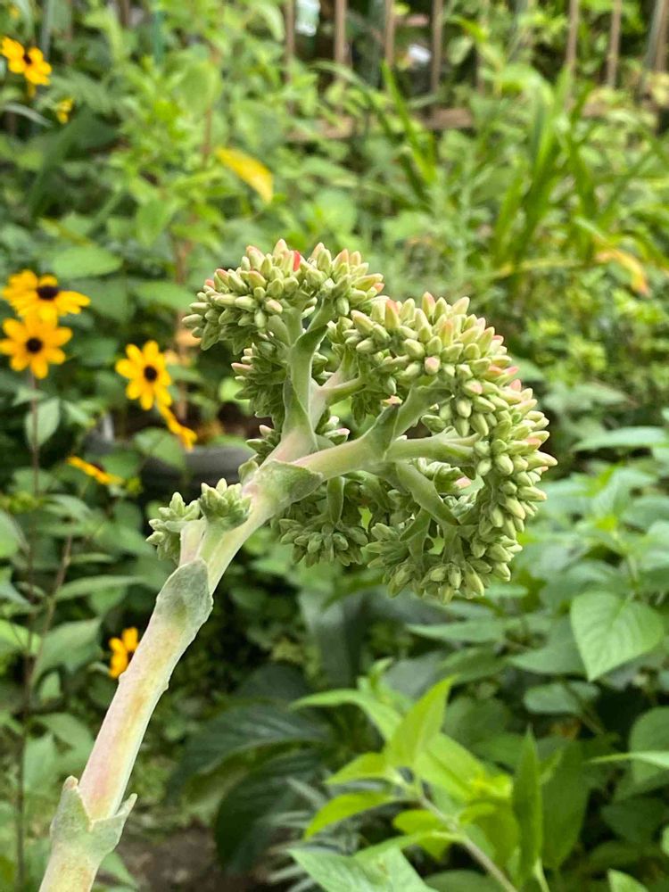 始めのサイズは一番小型の多肉植物のコーナーから選びました。今では寄せ植えの中でも大きく育ち初めて花が咲きます🧡