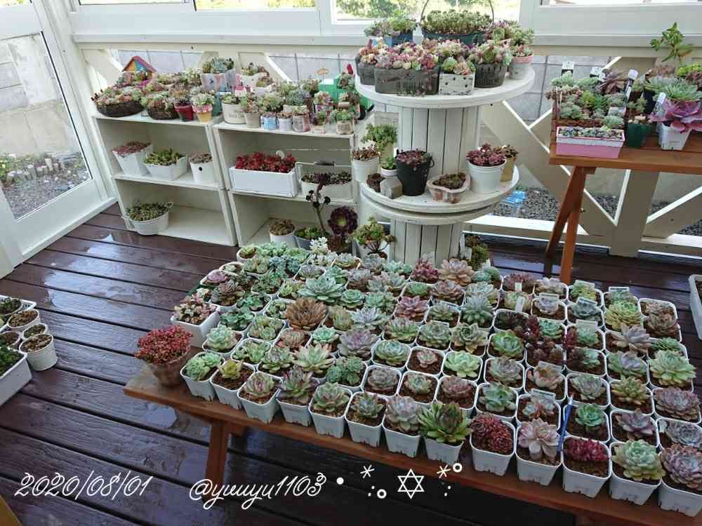 広いテラス憧れるなーお天気悪くてもガーデニング出来るもんね。羨ましいなー沢山の多肉ちゃん寄せ植えするんでしょう。お店みたいな量⤴️⤴️です