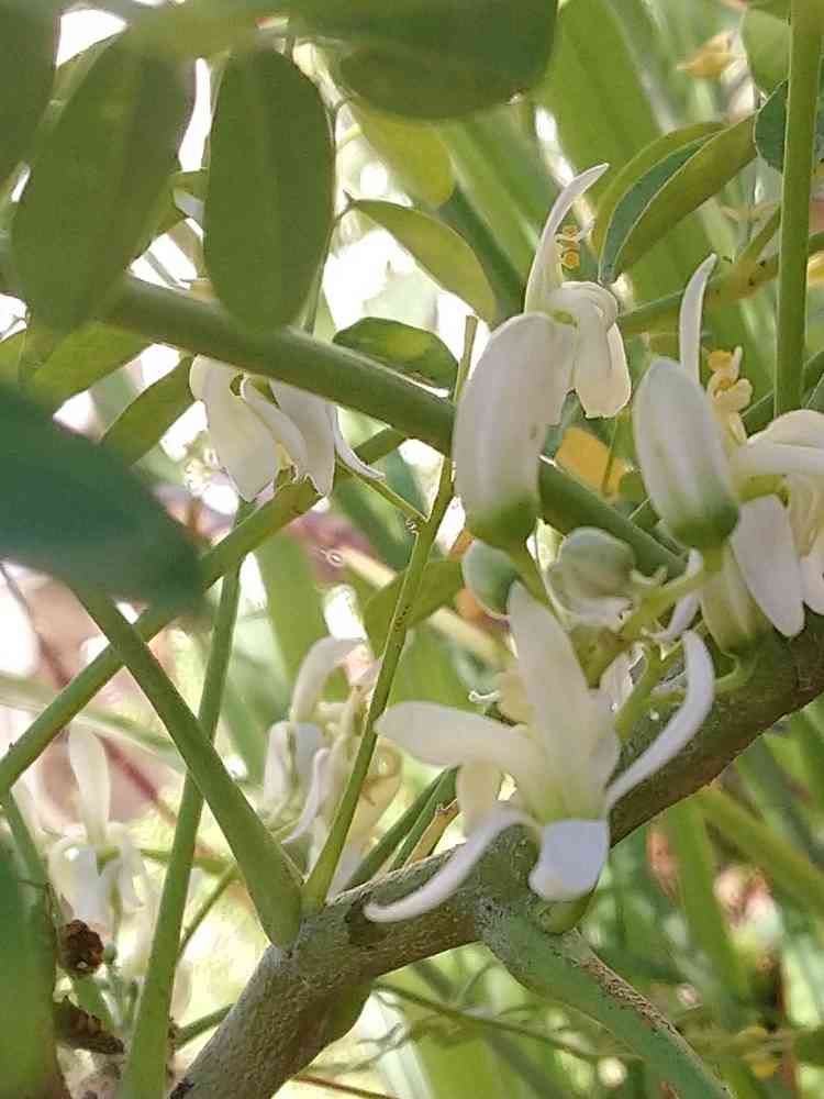 モリンガの花が咲きました🤗。うちのがモリンガに凝っていた時に、あちこち植えたのは、今や観葉植物😅。