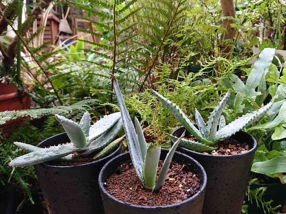 真ん中のアロエさんはトゲトゲが少ないんですね💦