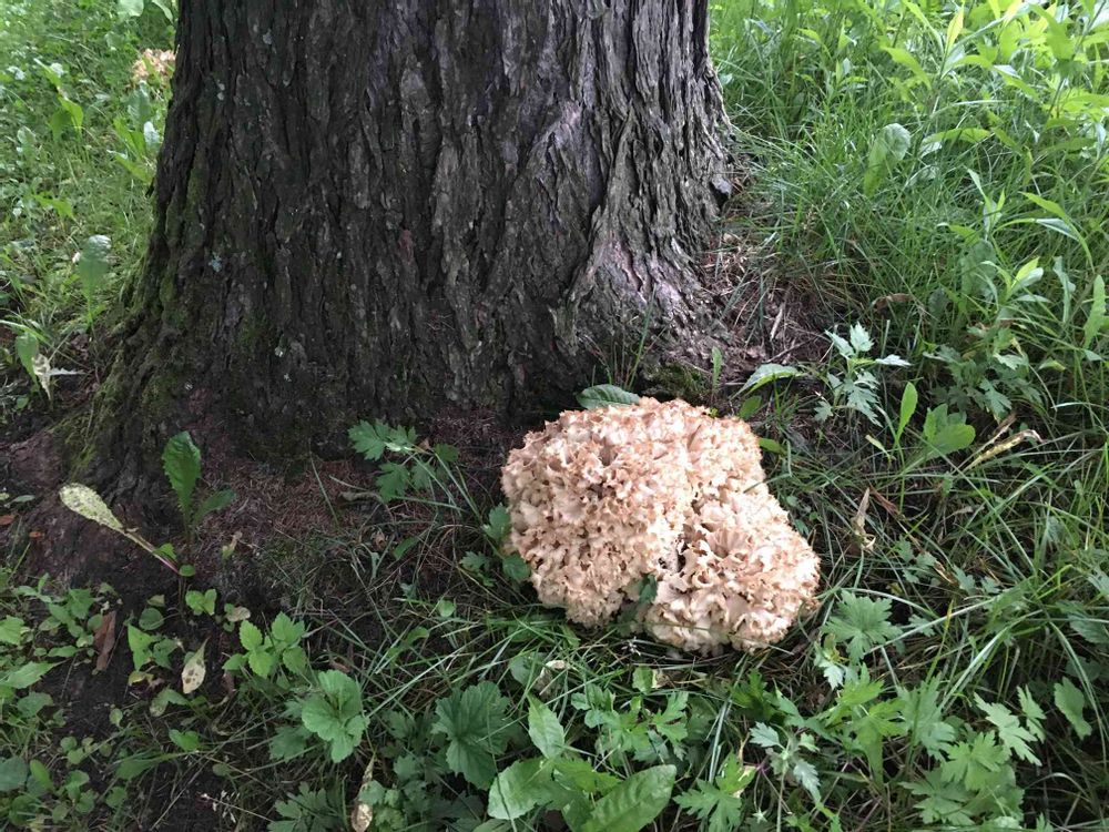今朝、早朝ゴルフに行ったら通路脇の木の根元にもっこりしたキノコがありました。