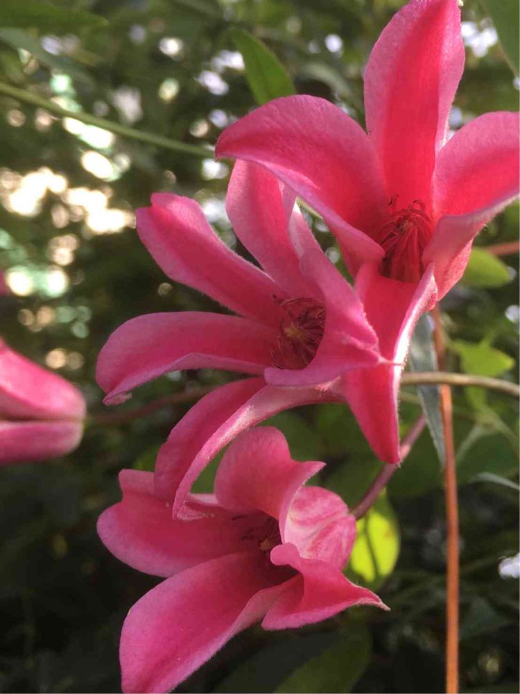 やっと咲き始めたクレマチス。プリンセスダイアナに似ていますが、おしべもピンクです😊