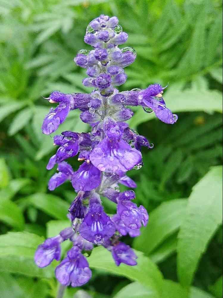 ブルーサルビアに沢山の雨の雫がキラキラ✨💍✨