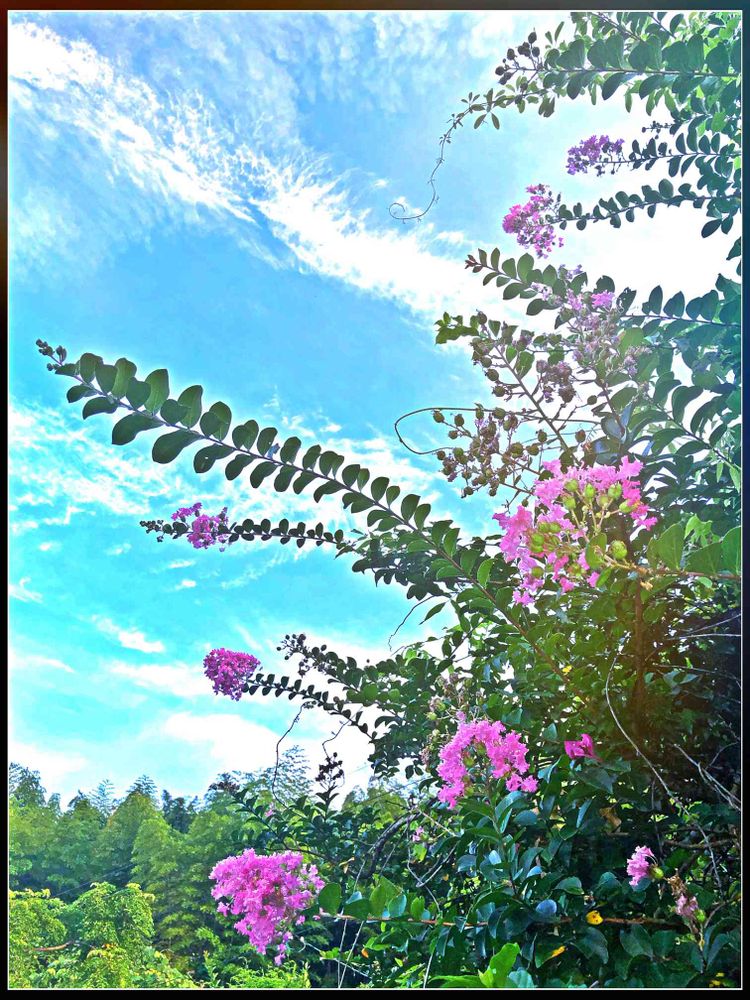 ♡ 梅雨があけてから、我が万葉の藪庭のサルスベリが満開になりました。