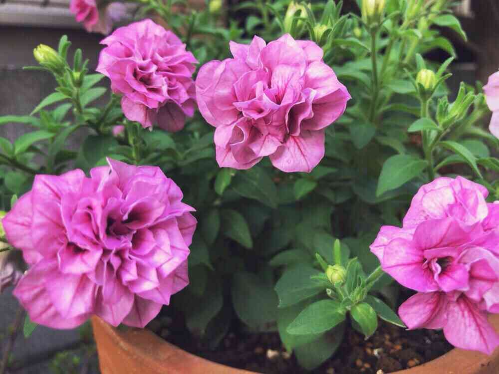 5月末にピンチしたサフィニアフリル。株がだいぶ広がったかな、という感じでたくさんつぼみがついています🌸🌸🌸