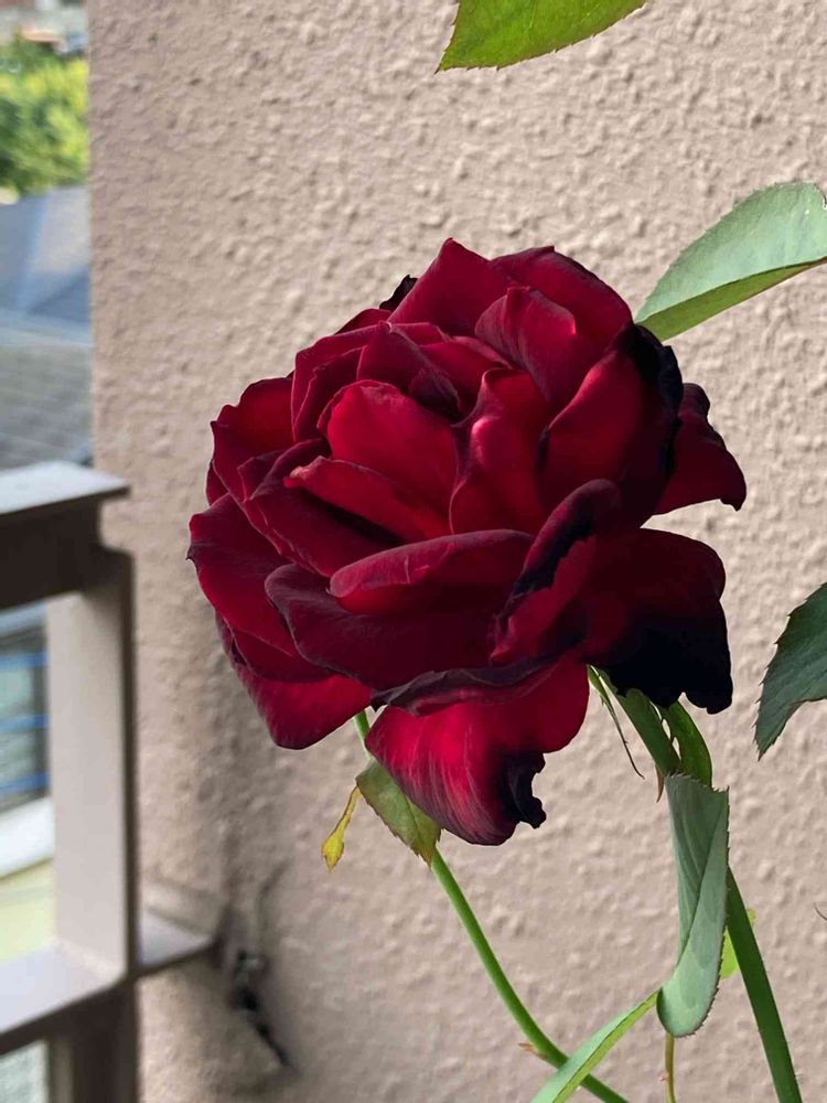 今回の花は、“黒バラ”らしい色で咲きました🌹ムシっとした暑さのせいか、ダマスク香が濃く感じられます。