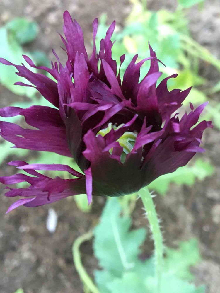 変わっているでしょ🎈🤡多分日本では販売できないポピーです👿種の袋はパステルカラーのポンポン型の花の写真だったのが、何故かこんな花が😂しかも雨降って☔️一日でちりました🤣