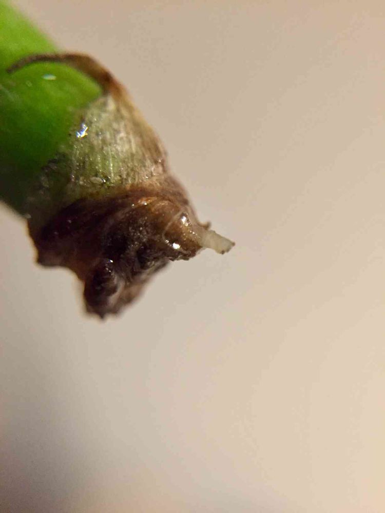 1ヶ月半も発根待ちだったマニエルラポストレイの極小カキコ。水耕に切り替えてもなかなか発根せず、しびれを切らして薬剤投与した瞬間生えました😅