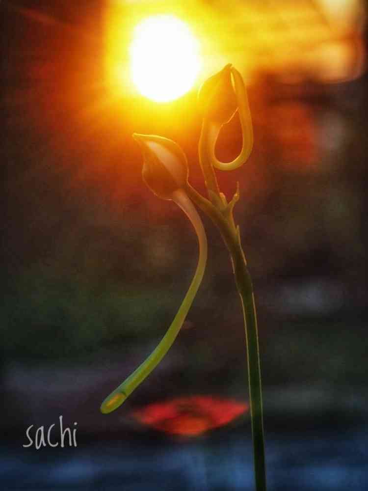 距(きょ)と呼ばれる長い蜜の入っている袋が伸びてきて、蕾も膨らみ白い物が見えてきました💮🌸✨✨✨😊