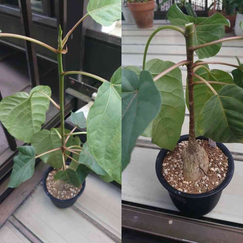 昨日梅雨明けしたので切り戻しし、夏型塊根達をまた外に出しました。