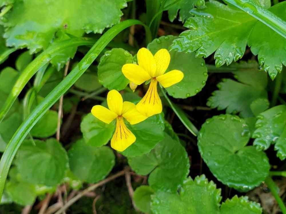 タカネスミレによく似ているが葉が違う。キバナノコマノツメは薄く、短毛の影響で光沢がない。