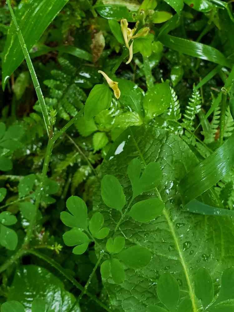 軽井沢の湿った木陰に咲いていました。明るい繊細なグリーンの葉っぱがハート型でかわいいです。葉っぱは写真下部、中央に写っているものです。花は小さく、1.5cm位。