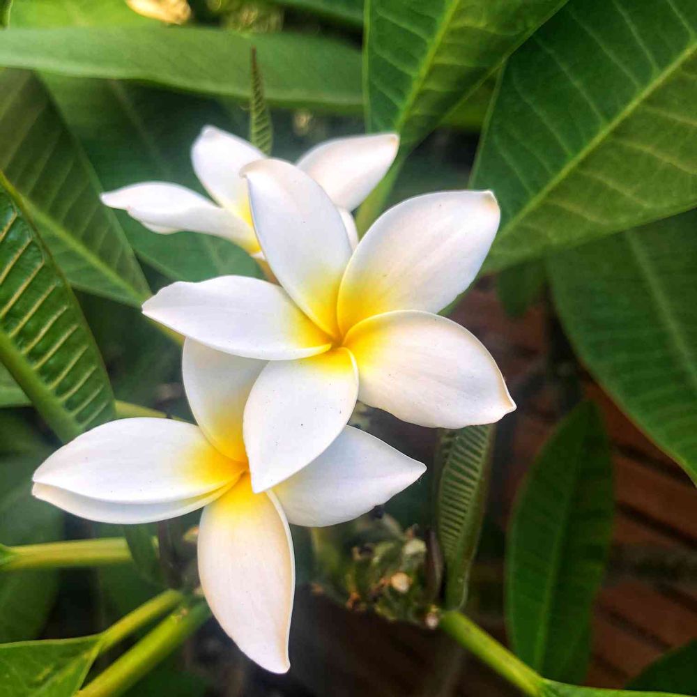 今日のプルメリア😆地植えの方は日当たりが悪いですがようやく連続開花が始まりました😊